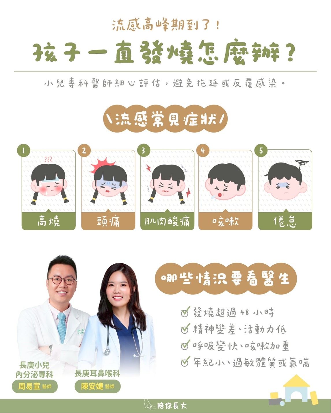 給家長的一段話:孩子發燒、咳嗽時最困擾的,往往不是溫度計上的數字,而是「現在該不該看醫生?要不要吃藥?會不會傳染同學?」這篇以小兒科臨床視角,帶您分辨一般感冒與流感、掌握就醫時機、正確使用退燒藥與抗病毒藥、以及流感疫苗重點。