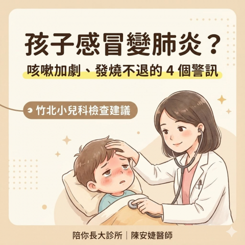 孩子感冒變肺炎?咳嗽加劇、發燒不退的 4 個警訊與竹北小兒科檢查建議